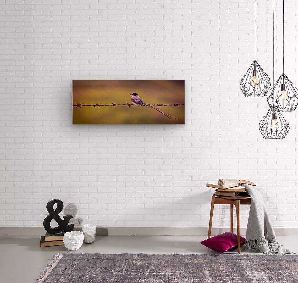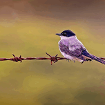 A delicate little bird sits along glowing wire, its long tail giving the whole scene a fairytale feeling. Soft, warm, and irresistibly calming.