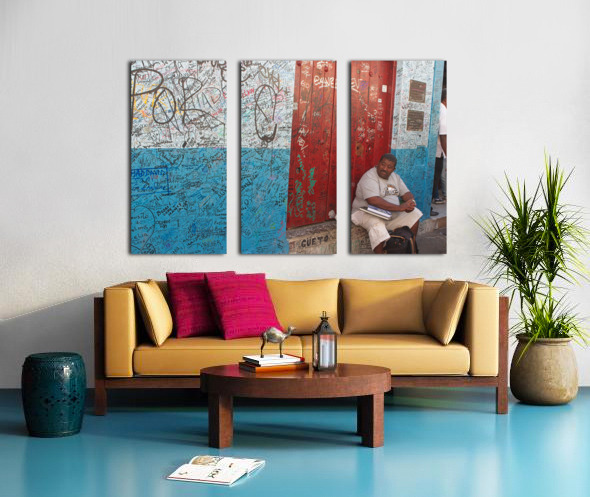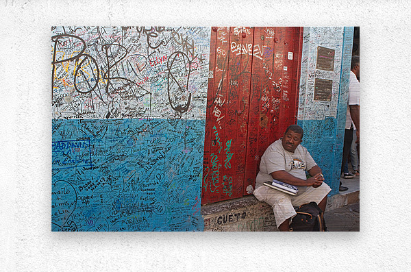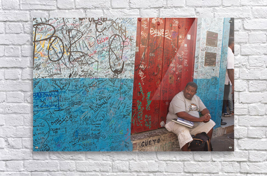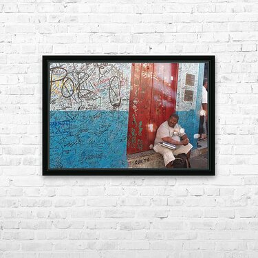 Get this artwork "Graffiti-Covered Wall with Seated Man" in a framed print.
