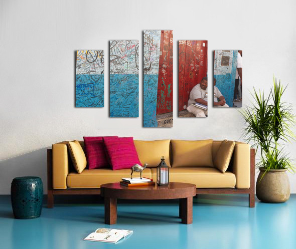 Graffiti-Covered Wall with Seated Man Canvas print