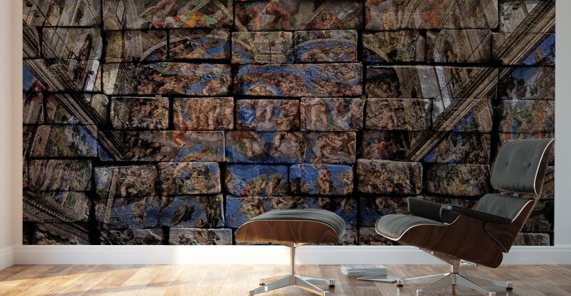 This striking artwork transforms a famous ceiling fresco into a bold, modern mosaic. The repeating blocks add movement and depth, giving new life to c...[+]