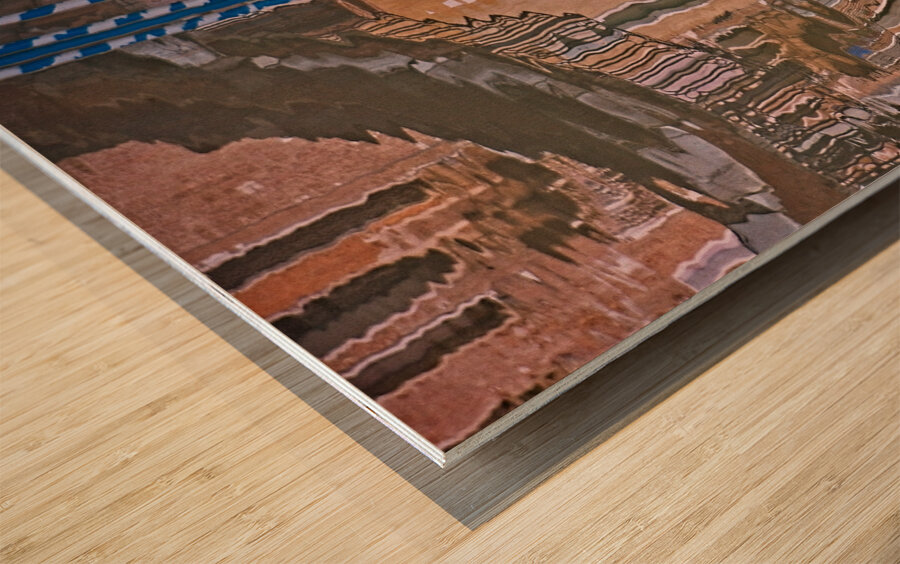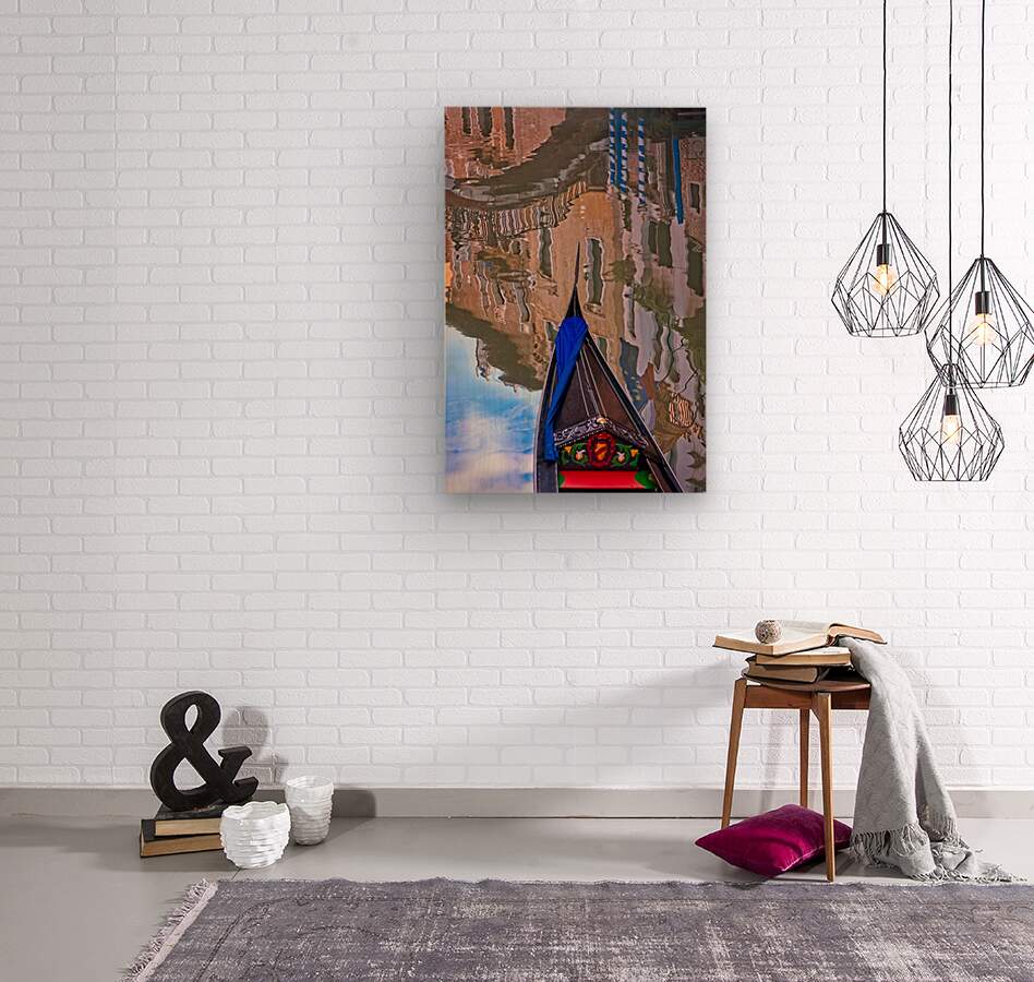 This image captures Venice in a unique, artistic way — upside-down reflections dancing on the water around a colorful gondola. The swirling shapes and warm tones make the scene feel playful and full of character. It’s a fun, eye-catching piece that brings movement and charm to any room.