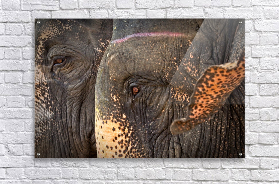 Two elephants stand side by side, their weathered faces reflecting years of shared journeys and survival.
