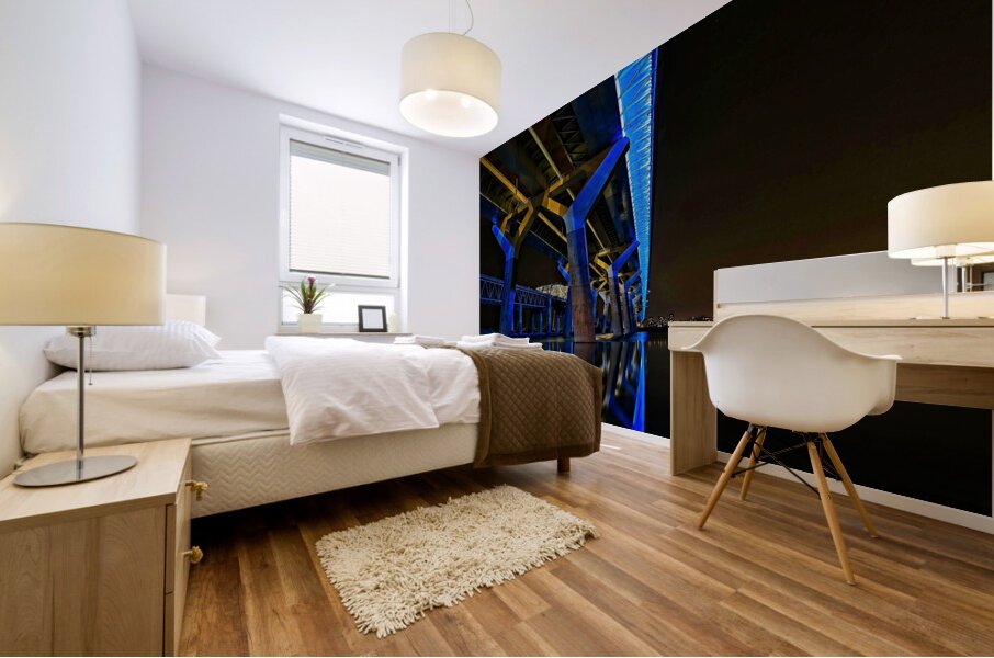 This striking nightscape captures Montreal’s Champlain Bridge glowing in bold blue and gold, reflected perfectly on the still surface below. The modern lines and vibrant colors bring instant energy to any room—perfect for offices, studios, contemporary living spaces, or anywhere you want a touch of urban sophistication. A standout piece for anyone who loves architecture, Montreal, or dramatic nighttime photography.