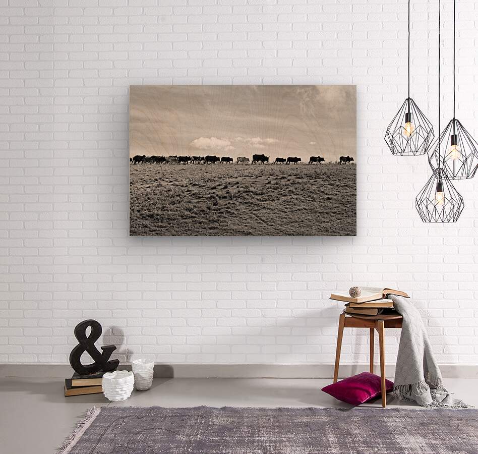 Looking for art that makes people smile? This cheerful photo of cows strolling across a hilltop is the perfect pick. The animals line up like they’re on a casual group adventure, creating a playful moment frozen in time. The black-and-white look keeps it stylish, making it a great piece for living rooms, kitchens, offices, or any space that needs a fun, friendly boost.