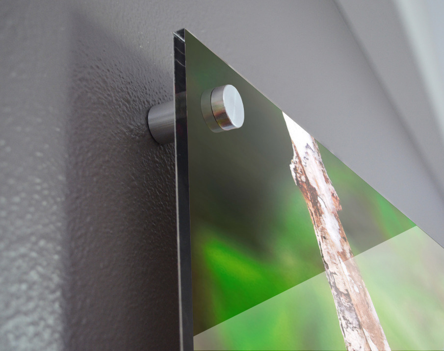 Impression sur acrylique avec entretoises ( cylindres métalliques )