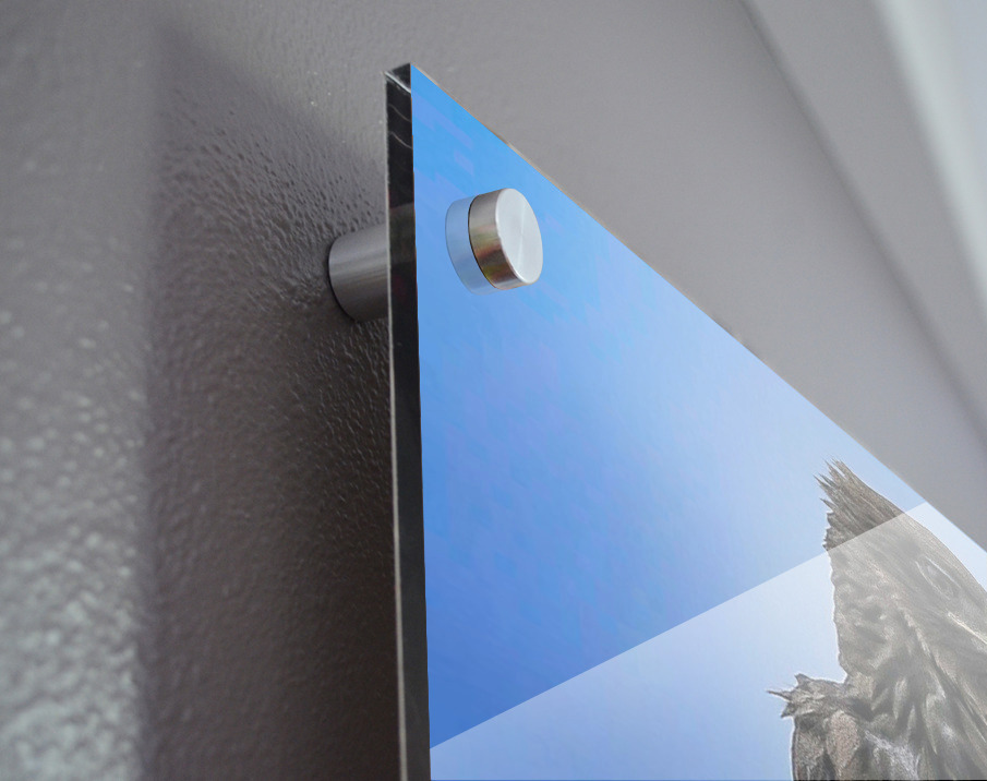 Impression sur acrylique avec entretoises ( cylindres métalliques )