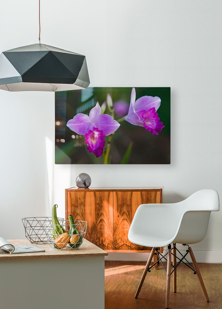 Soft, elegant, and vibrant—this close-up of twin orchids celebrates natural luxury. The rich purples and delicate petal textures bring a sense of serenity and sophistication to any room. A perfect choice for uplifting bedrooms, spas, offices, or any space needing a touch of refined botanical charm.