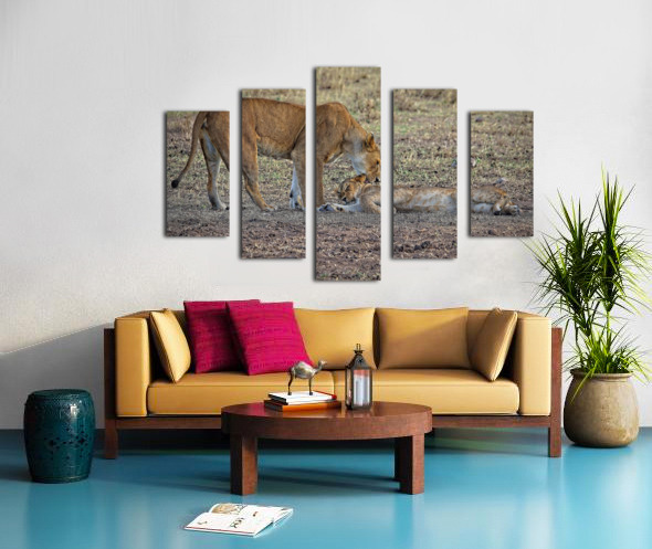 A lioness gently nudges her cub sprawled on the ground, a moment of affection wrapped in dusty savanna tones. A quiet glimpse into the tenderness behi...[+]