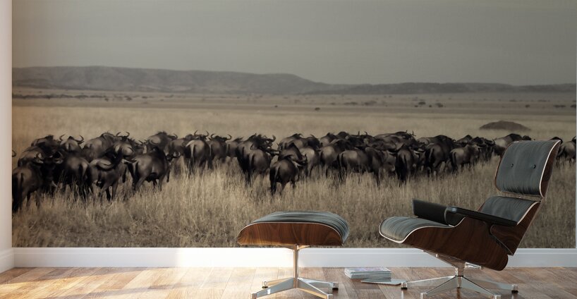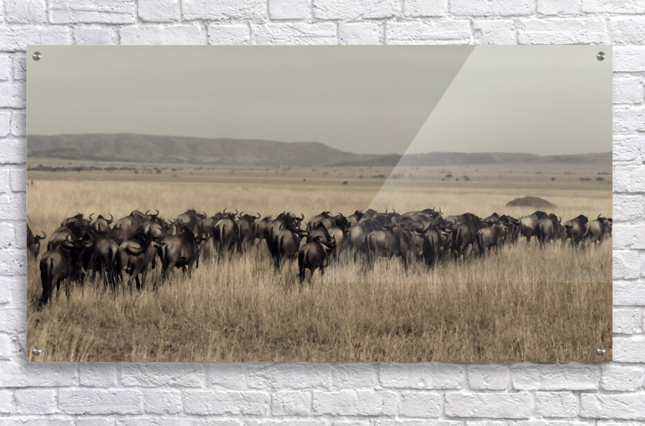 Wildebeest Migration Line Impression sur bois