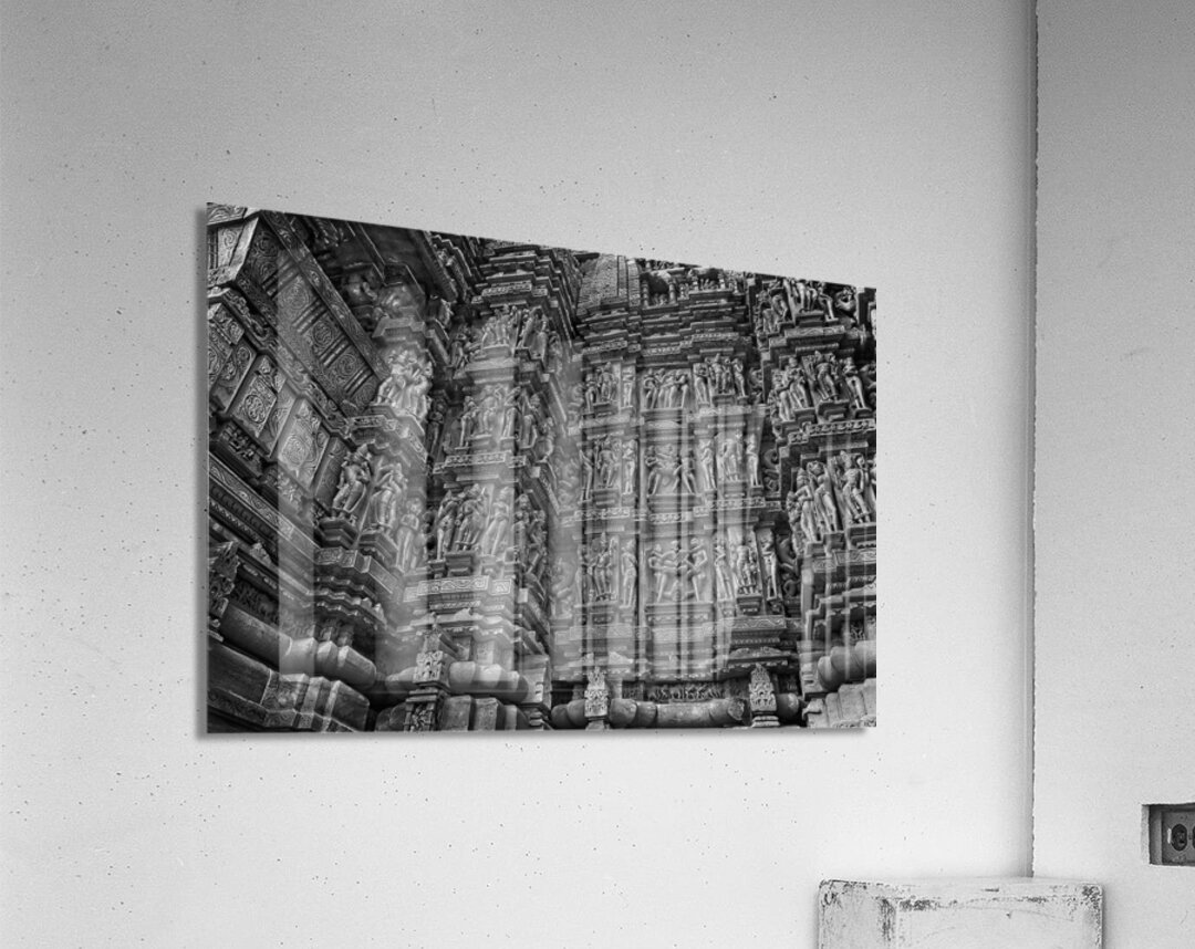 Intricate carvings from ancient temple walls fill this powerful architectural study. The black-and-white palette highlights texture, craftsmanship, and historical mystery — an exceptional statement piece for art lovers and cultural enthusiasts.