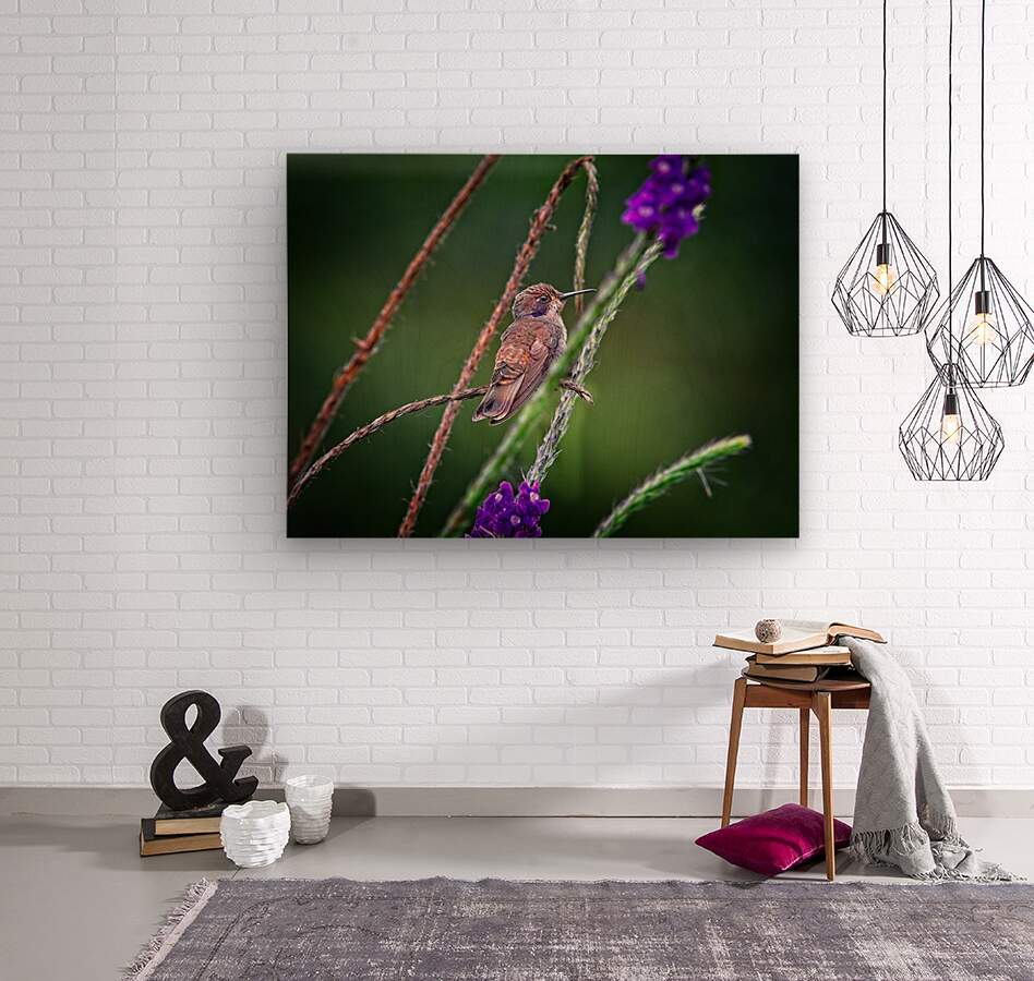 Captured mid-hover, a hummingbird leans into a red bloom, wings suspended in a translucent blur. Light spills through its feathers, turning the scene ...[+]