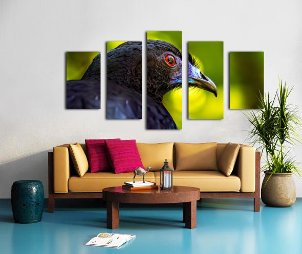 Deep black feathers, vivid red eyes—this close-up portrait is dramatic and full of intensity. A bold, modern piece for collectors who like their art...[+]