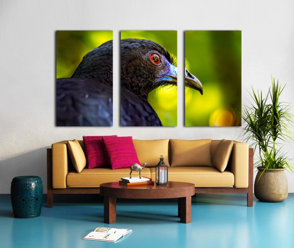 Deep black feathers, vivid red eyes—this close-up portrait is dramatic and full of intensity. A bold, modern piece for collectors who like their art...[+]