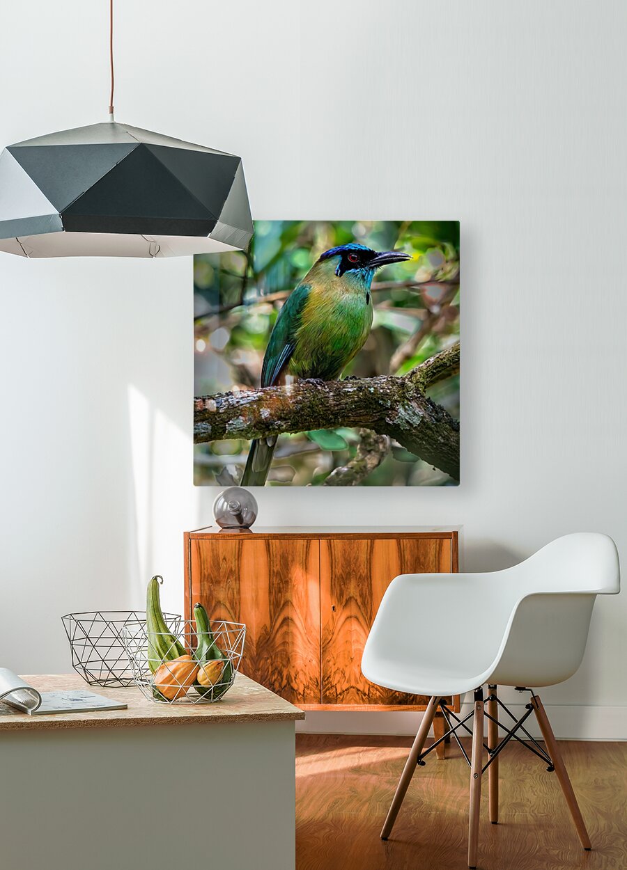 With brilliant blues and greens, this exotic bird looks like it flew straight out of a dream. A lively and enchanting artwork for anyone who loves color and character.