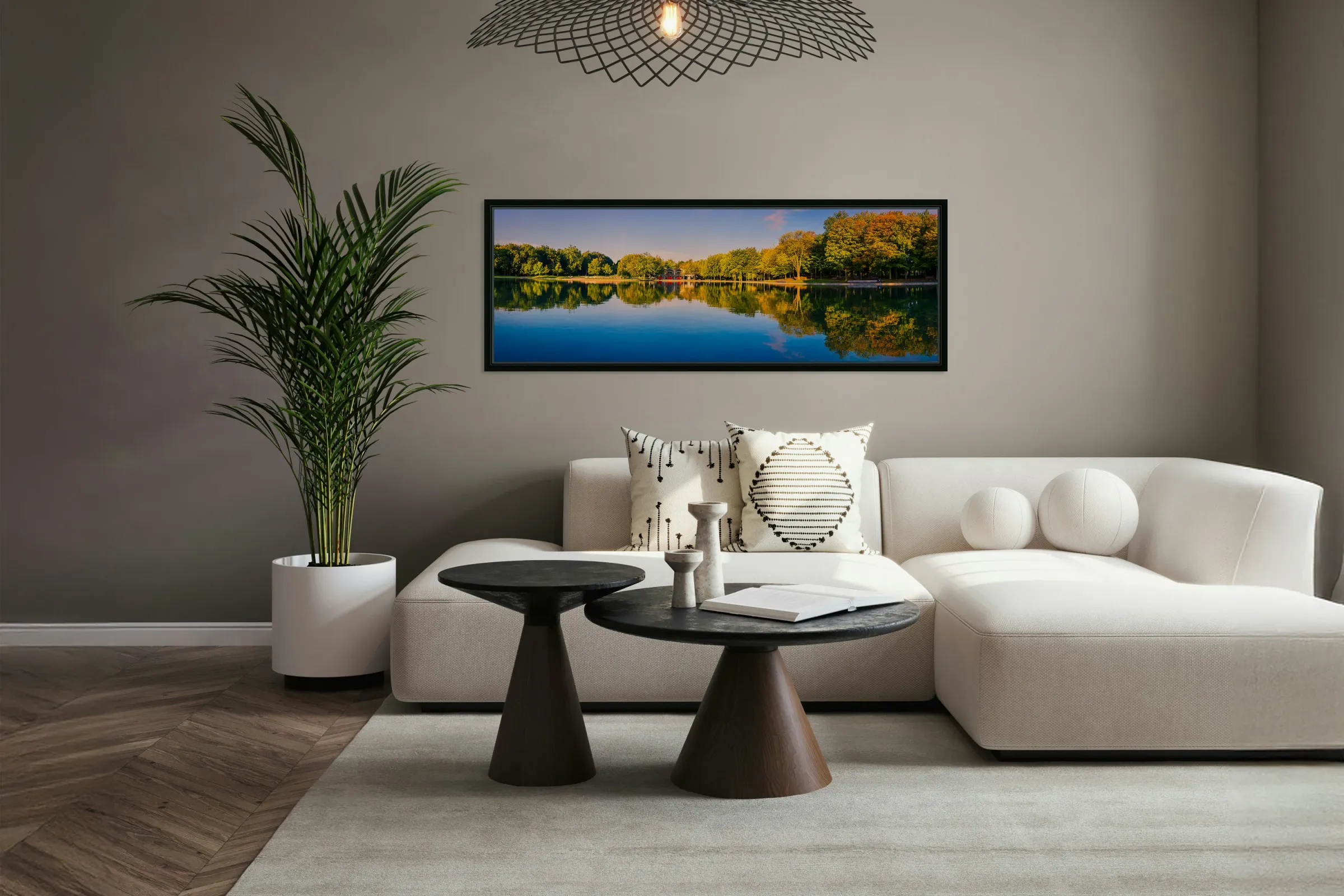 Bring the calm beauty of Montreal’s iconic Mont-Royal Park into your space. This panoramic artwork captures the lake at golden hour, where warm autu...[+]