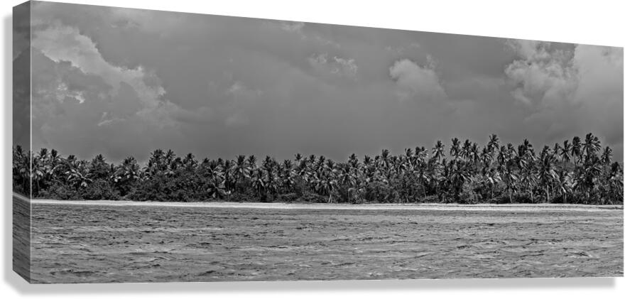 Majestic palm trees stretch endlessly along a remote shoreline in this striking black-and-white panorama. Minimalist yet dramatic, it’s the perfect ...[+]