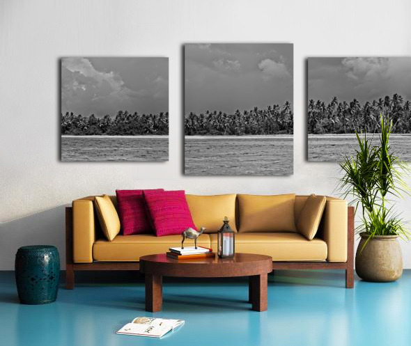 Majestic palm trees stretch endlessly along a remote shoreline in this striking black-and-white panorama. Minimalist yet dramatic, it’s the perfect statement piece for modern interiors seeking bold contrast and natural beauty.