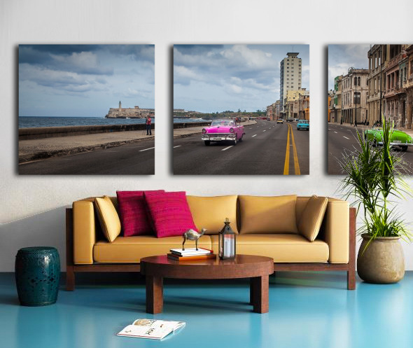 Vibrant vintage cars cruise along Havana’s iconic waterfront, blending nostalgia with bold color and energy. This artwork adds a lively, travel-inspired charm to any room and is ideal for lovers of culture and retro aesthetics.