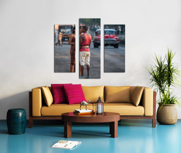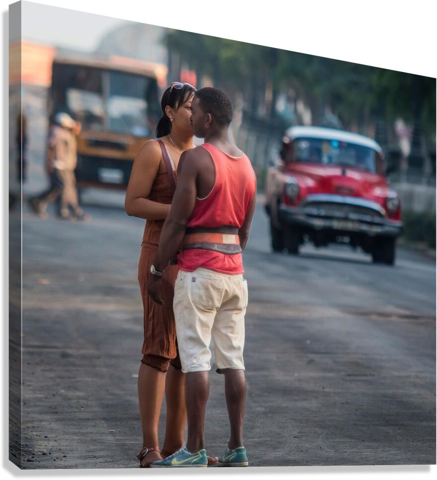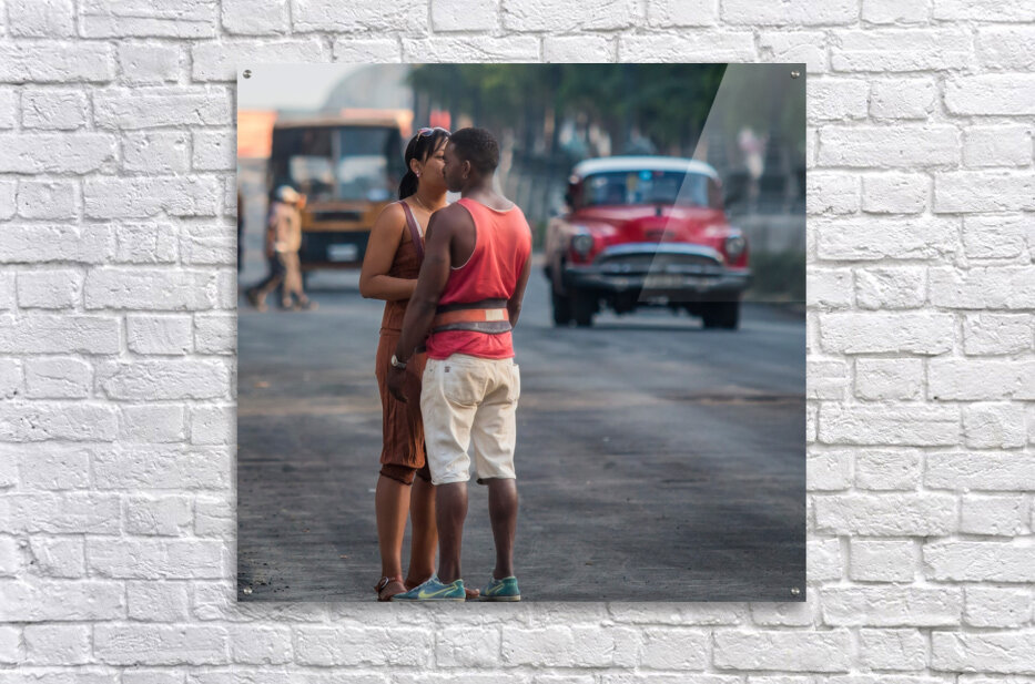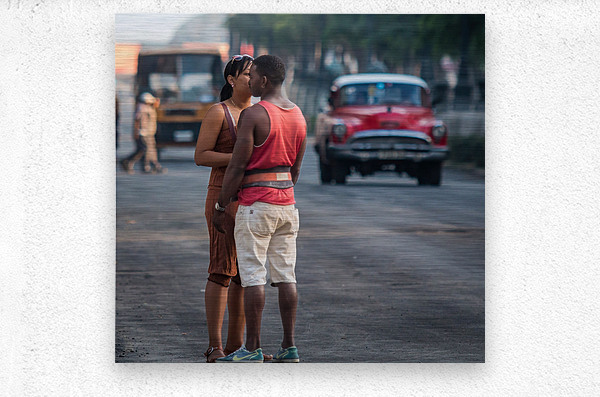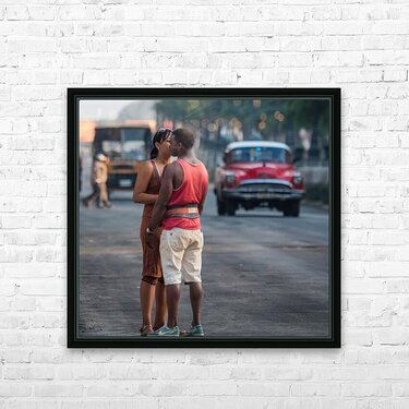 A tender moment unfolds in the soft Havana morning light as a couple shares a quiet kiss amid vintage cars and a slowly waking city. Romantic and cinematic, this artwork adds warmth and emotional depth to any collection—perfect for those who love authentic human stories.