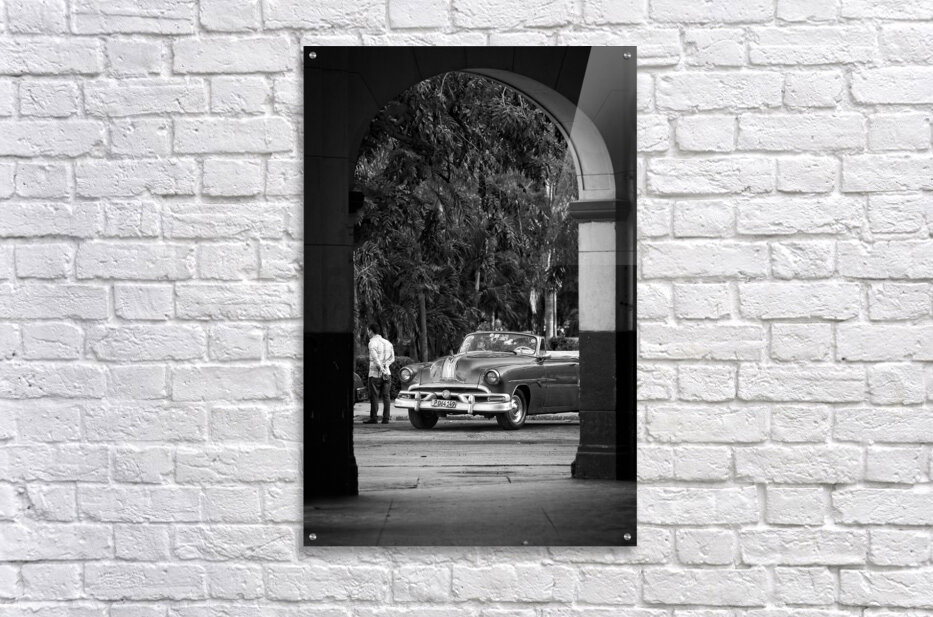 A vintage American classic car framed beneath an arch captures the timeless charm of Havana. This photograph blends nostalgia, culture, and cinematic contrast—an ideal statement piece for lovers of retro aesthetics.