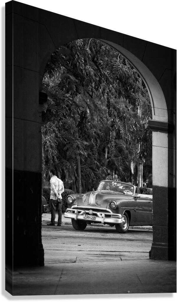 A vintage American classic car framed beneath an arch captures the timeless charm of Havana. This photograph blends nostalgia, culture, and cinematic ...[+]