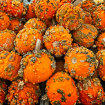 A vibrant tapestry of textured mini-pumpkins fills the frame with bold oranges and rustic greens. This energetic composition brings the warmth and spi...[+]