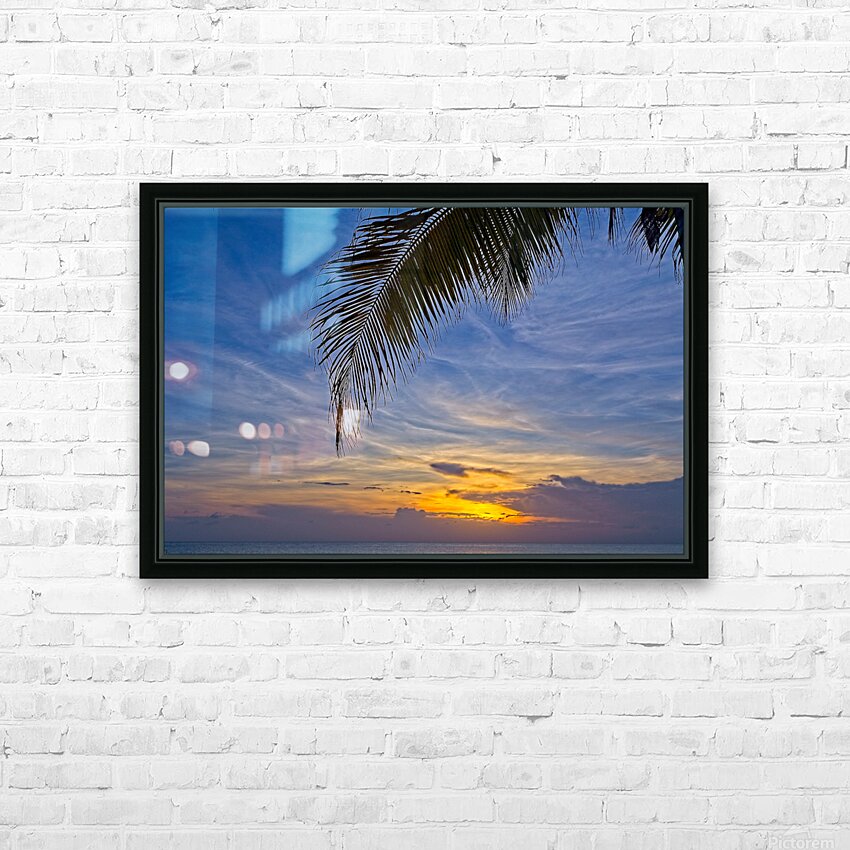 Palm-Framed Sunset  HD Metal print with Floating Frame on Back