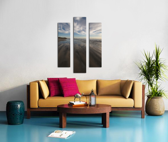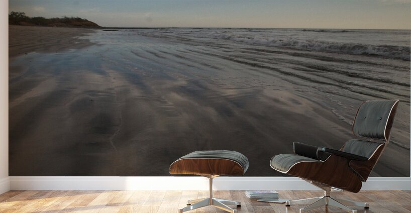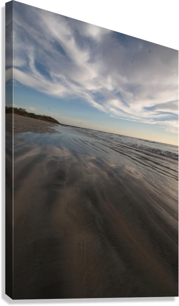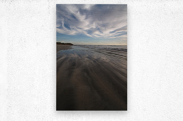 Immerse yourself in the serene poetry of shoreline and sky. This captivating photograph showcases delicate water patterns sweeping across smooth sand, mirroring a sky painted with soft, swirling clouds. The low-tide reflections create a mesmerizing gradient of light and texture, drawing the eye toward the horizon where sea and sky quietly meet. A perfect piece for anyone who loves coastal calm, minimalist natural beauty, or the soothing rhythm of the ocean.