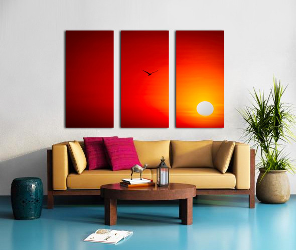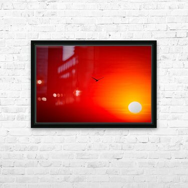 Ignite your space with this striking minimalist sunset artwork, where a lone bird glides across a blazing red sky. The intense gradient from deep crim...[+]