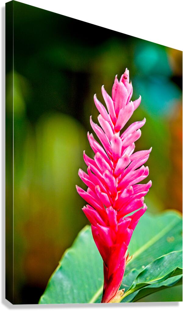 Bursting with tropical vibrance, this striking close-up of a pink ginger flower brings instant warmth and energy to any space. Its vivid colors and elegant form make it a perfect statement piece for nature lovers and modern interiors alike.