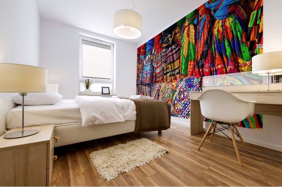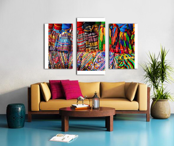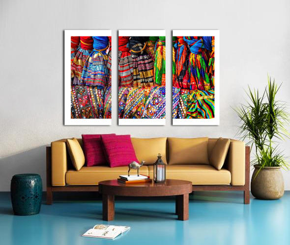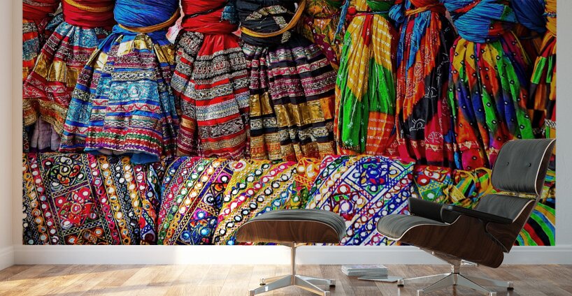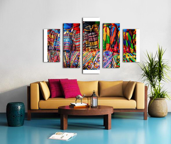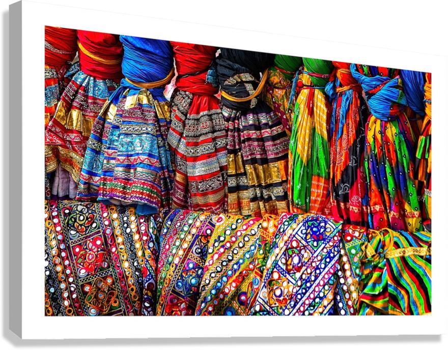 This vibrant image bursts with color, pattern, and texture. The bright fabrics create a joyful, energetic scene that feels full of celebration and culture. It’s perfect for adding excitement, warmth, and personality to any room.