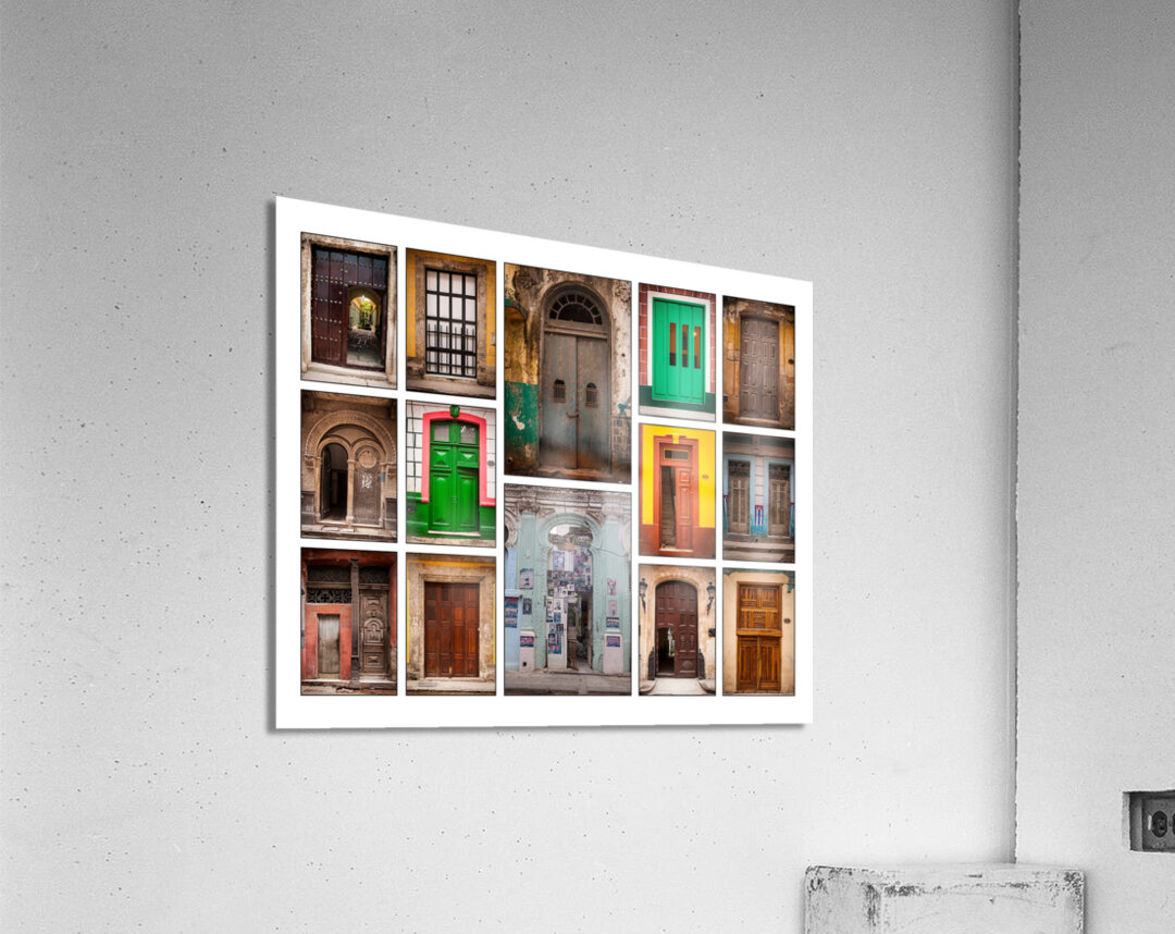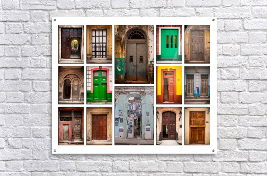 This colorful collage of doors is full of character and charm. Each doorway has its own personality, from bold greens to weathered wood and bright painted walls. Together they create a lively, inviting piece that celebrates culture, history, and the beauty of everyday places.