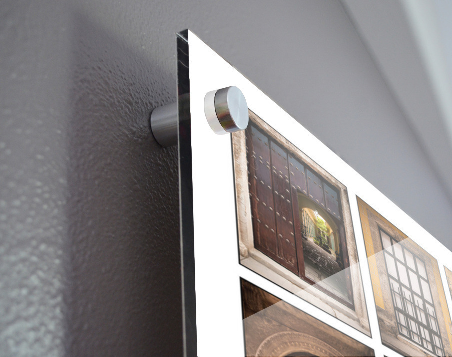 Printed to the edge - Ready to hang - provided with 4 premium polished aluminum stand off ( wall screws and mounting hardware provided )