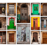 This colorful collage of doors is full of character and charm. Each doorway has its own personality, from bold greens to weathered wood and bright pai...[+]