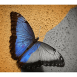 This beautiful butterfly stands out with its glowing blue wings against a warm, textured background. The soft contrast makes the colors look even rich...[+]