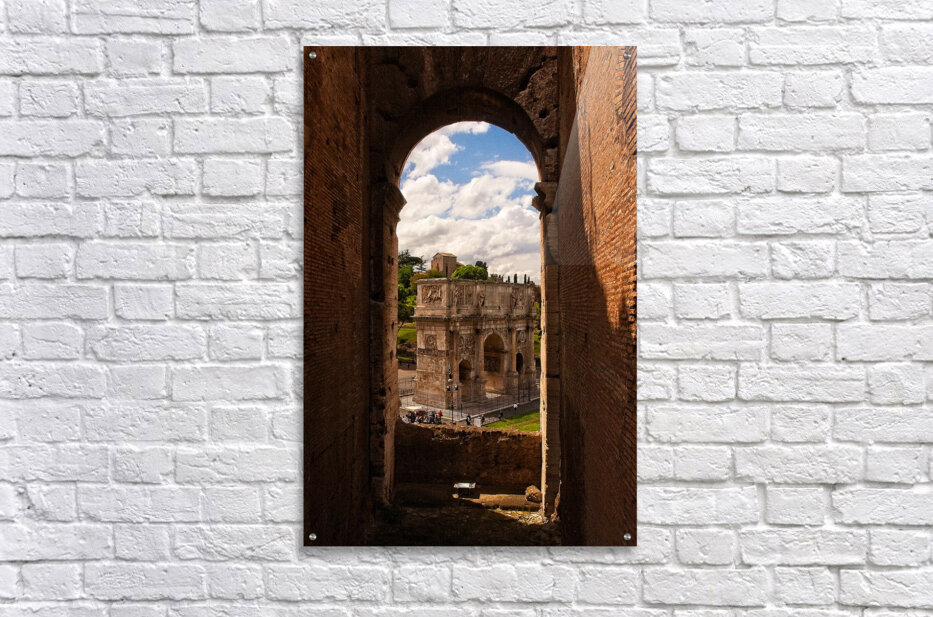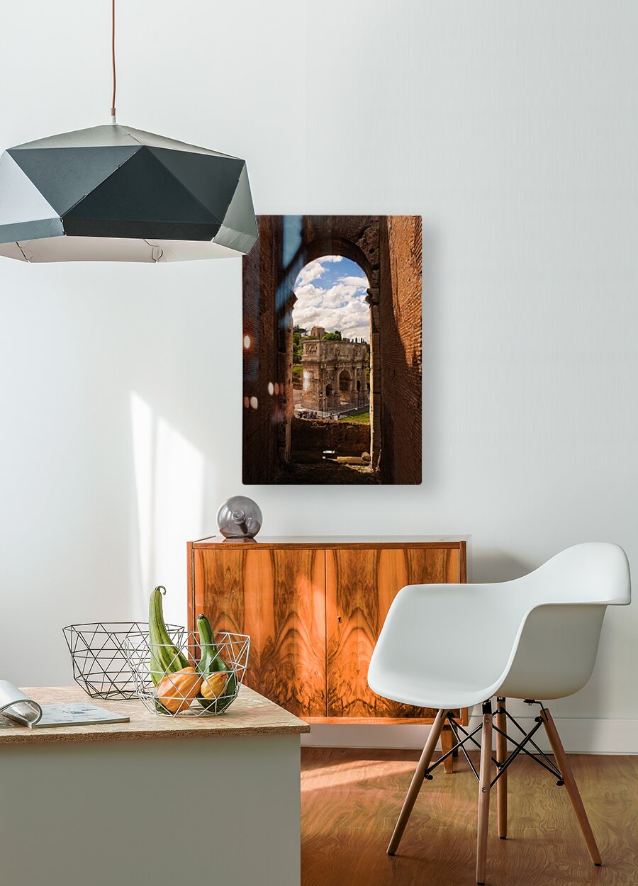 This warm, inviting scene looks like a window into history. The ancient stones frame a bright sky and beautifully detailed monument below, making the whole moment feel alive. It’s a rich, timeless piece that adds depth, warmth, and storytelling to your space.