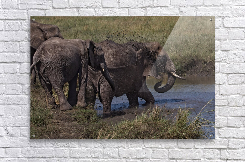 Elephants revel in the cooling embrace of mud and water, a playful moment of relief under the African sun.