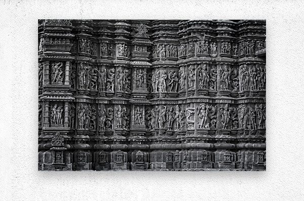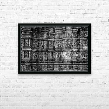 This detailed black-and-white photograph showcases rows of beautifully carved figures, each telling a story of its own. The repeating patterns and deep shadows create a dramatic, textured look that feels timeless. It’s perfect for adding depth and cultural richness to any space.