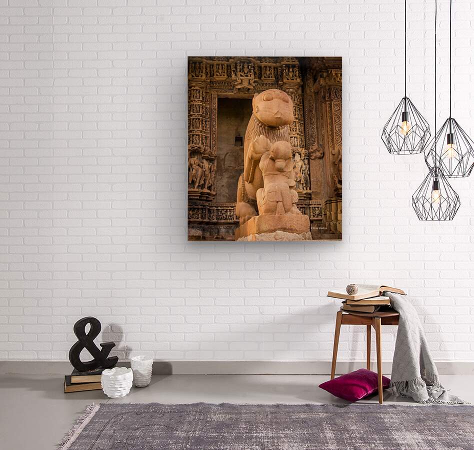 This powerful sculpture stands proudly among ancient carvings, surrounded by layers of incredible detail. The warm tones of the stone and the intricate designs give the whole scene a sense of history and strength. It’s a bold, captivating artwork that adds culture and grandeur to your space.