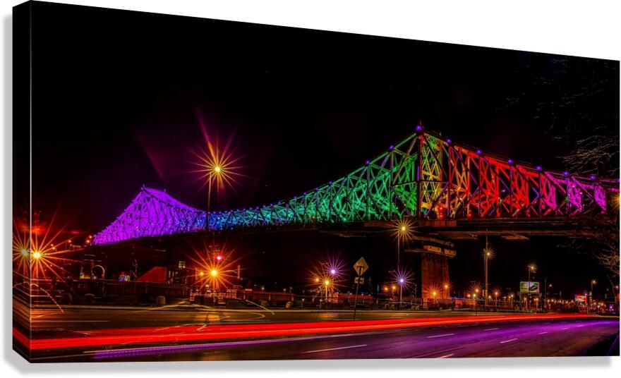Bring electrifying Montreal energy into your space with this vibrant night shot of the Jacques Cartier Bridge, glowing in a full spectrum of colour. Light trails sweep across the foreground, adding a sense of motion and urban excitement. This piece is perfect for modern living rooms, office spaces, creative studios, or anywhere you want to inspire city-life ambition and late-night wanderlust.