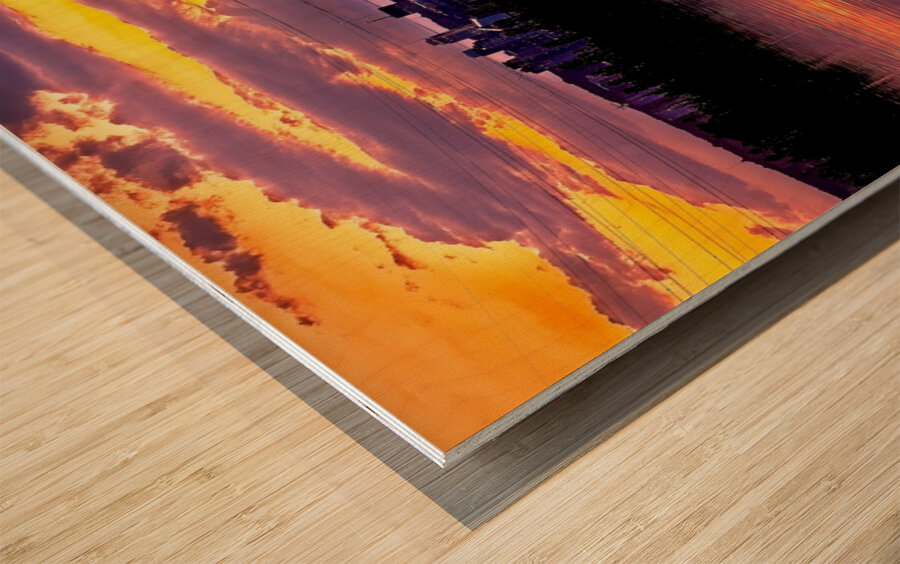 A dramatic Montreal skyline glows against a fiery sunset, mirrored perfectly on the water. This bold, modern piece brings energy and color into any li...[+]