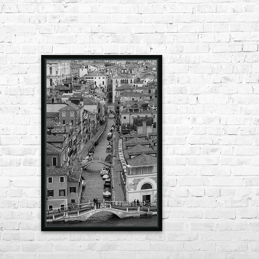 An aerial perspective of Venice’s intricate waterways, bridges, and rooftops. A sophisticated, architectural piece ideal for collectors drawn to urb...[+]