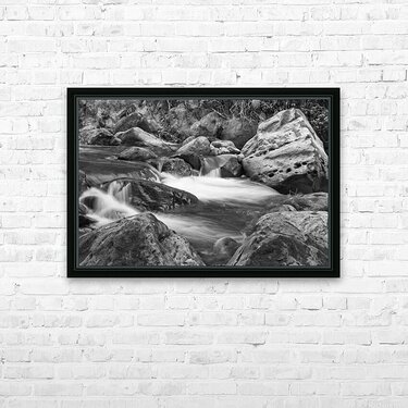 Soft moving water contrasts with the rugged permanence of river stones. This calming monochrome adds serenity and organic balance — perfect for bedr...[+]