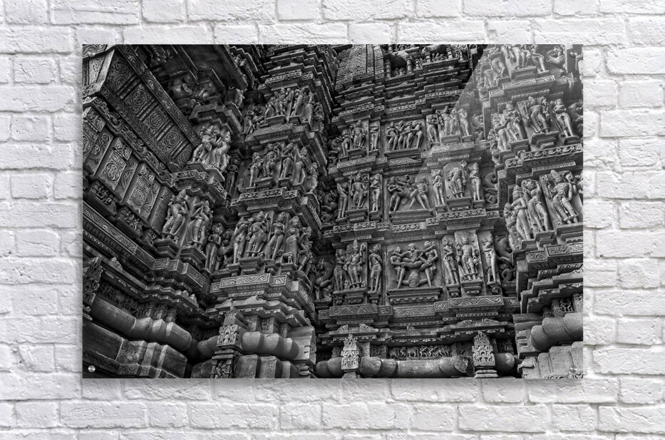 Intricate carvings from ancient temple walls fill this powerful architectural study. The black-and-white palette highlights texture, craftsmanship, and historical mystery — an exceptional statement piece for art lovers and cultural enthusiasts.