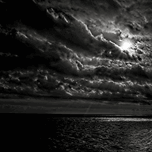 A dramatic black-and-white seascape where sunlight battles through turbulent clouds, illuminating the water below. Bold, moody, and unforgettable — ...[+]