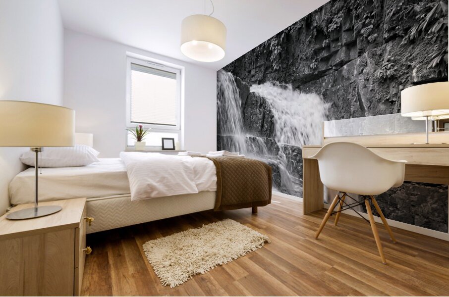 This calming black-and-white waterfall scene brings a peaceful rhythm into any room. Soft water, strong stone—perfect...[+]