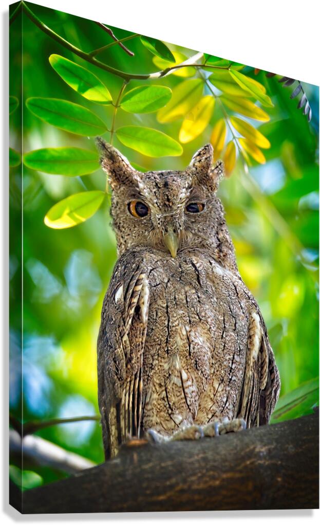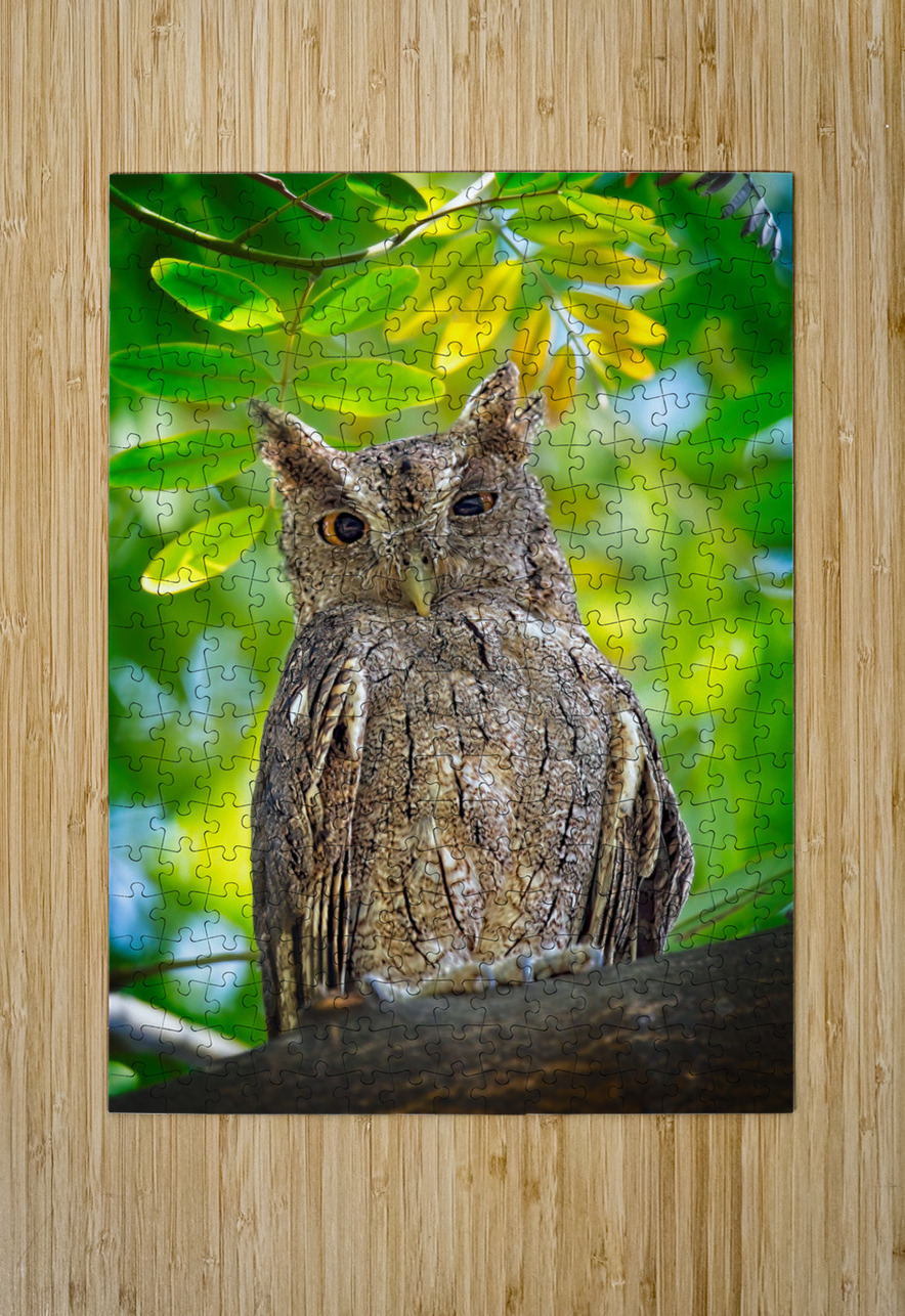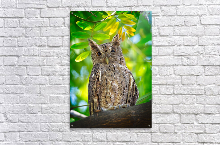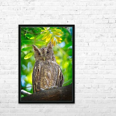 Nestled among glowing greens, the owl stands poised and contemplative. Its intricate markings and statuesque posture capture the timeless elegance of ...[+]