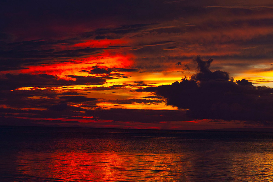 Deep crimson and fiery amber ignite the sky while their reflections ripple across the dark ocean surface. A dramatic, emotion-packed artwork that adds...[+]