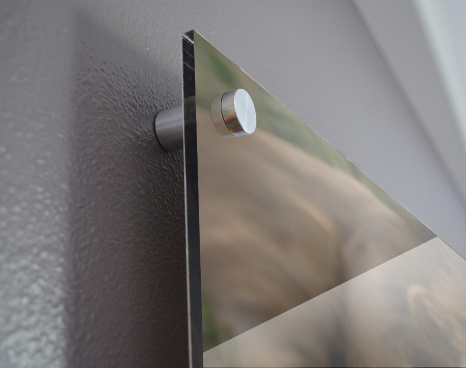 Impression sur acrylique avec entretoises ( cylindres métalliques )