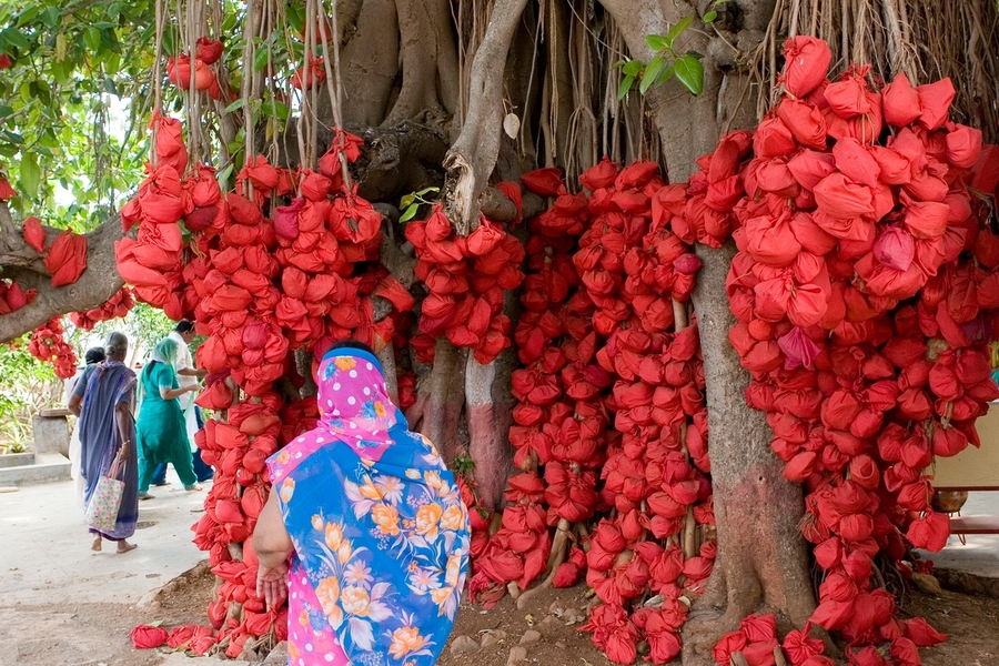 This colorful scene shows hundreds of bright red cloth bundles hanging from the branches of an old tree — a beautiful tradition of hopes, prayers, a...[+]